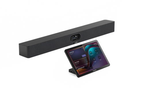 Yealink MeetingBar A40, an all-in-one video collaboration bar for premium small-to-medium rooms. It will combinethe images from two 48MP lenses, presents a higher pixel picture, and delivers clearer image quality. It alsofeatures built-in 2 stereo speakers, 8x MEMS microphone array, and supports 2 additional expansion microphones*.